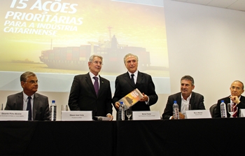 Em seu discurso, Côrte disse que os empresários de Santa Catarina decidiram por não chorar e não desistir. “Decidiram lutar por um País melhor, íntegro e desenvolvido do qual nós e nossos filhos possamos sempre nos orgulhar”, completou, após apresentar as 15 ações prioritárias da indústria catarinense contempladas em um documento entregue ao vice-presidente da República. São propostas nas áreas: política de desenvolvimento, ambiente institucional, produtividade, ajuste fiscal, política industrial, inovação, sistema tributário, inserção externa da indústria, relações trabalhistas e transporte e logística. Veja o resumo abaixo.