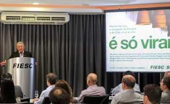 A Federação das Indústrias de Santa Catarina (FIESC) lançou campanha estadual de combate ao mosquito aedes aegypti, principal transmissor de doenças como a dengue, vírus zika e febre chikungunya. A ação, que tem apoio das federações dos trabalhadores − FETIAESC, FETICOMSC, FETIESC, FETIGESC e FETIMMMESC −, prestará esclarecimentos sobre o assunto, levando para dentro das fábricas cartilhas explicativas sobre a importância da eliminação de potenciais criadouros do aedes aegypti e os sintomas das doenças. O lançamento, realizado nesta quinta-feira (18), em Florianópolis, contou com a participação do secretário de Estado da Saúde, João Paulo Kleinubing.