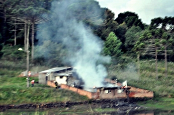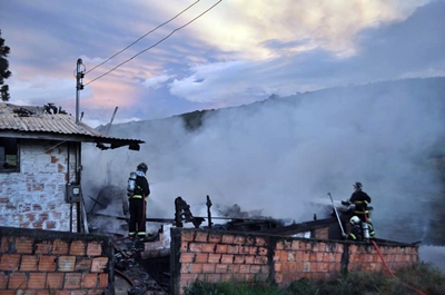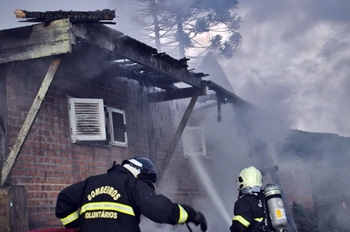 Uma casa mista de dois pavimentos foi destruída por um incêndio no início da noite desta sexta-feira, 27 de fevereiro, ás margens da rodovia SC-350, na Comunidade do Cerro Branco, interior de Caçador.