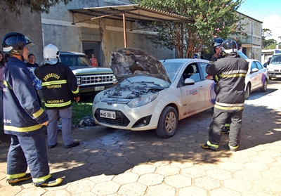 Um veículo da Prefeitura de Caçador teve um princípio de incêndio na tarde desta segunda-feira, 29 de fevereiro. O Ford Fiesta utilizado pela da Secretaria Municipal de Educação estava fazendo transporte de materiais e era ocupado por duas funcionárias no momento do ocorrido.