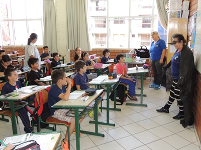 Dando continuidade ao dia D os alunos do Ensino Fundamental receberam a “visita” do mosquito. Em uma ação interativa, o personagem orientou as crianças quanto à prevenção para evitar água parada, reduzindo assim o risco da transmissão das doenças.