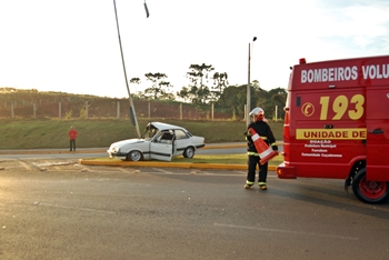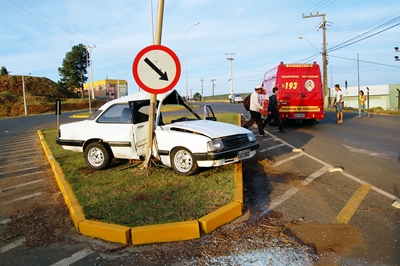 Um veículo subiu num canteiro e colidiu num poste de iluminação do trevo do Sesi na Rodovia Honorino Moro em Caçador na manhã deste sábado, 19 de março. O acidente aconteceu por volta das 6h40min.