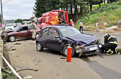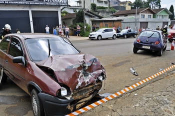 De acordo com informações, o Corsa descia a avenida em direção ao centro do município quando teve a frente cortada pelo Ká, cujo motorista resolveu fazer uma conversão em cima da pista de rolamento.