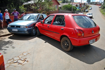 Com a força do impacto, o Gol foi empurrado contra o meio fio da calçada do seu lado direito. O Fiesta também teve avarias, principalmente na parte frontal.