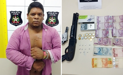 No momento em que recebeu voz de prisão, além de várias pedras de crack e possuía também dois simulacros de arma de fogo, uma balança de precisão e dinheiro.
