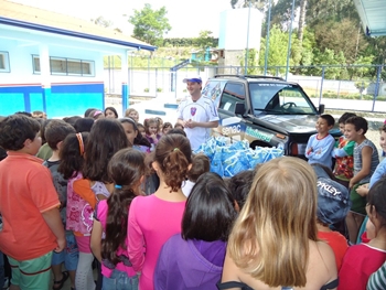 Além da entrega dos Kit´s (Squeeze, escova de dente, informativo e sacola) para todas as crianças, outro ponto importante do evento foi a entrega de uma bola oficial para a Diretora da Escola.