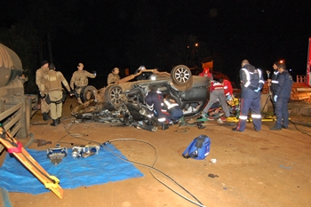 Com a violência da colisão, todos os ocupantes do carro sofreram graves ferimentos. Como em princípio nenhum utilizava cinto de segurança, sequer foi possível precisar quem estava dirigindo o veículo.