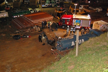 De acordo com informações, o Fiat Marea placas MJN-1111 de Videira descia a rodovia em direção a área urbana em alta velocidade quando o motorista perdeu o controle da direção, saiu da pista e literalmente voou com o carro por uma distância de aproximadamente 50 metros até bater na traseira de um caminhão pipa que estava estacionado no pátio que atualmente serve de garagem para as máquinas da prefeitura.