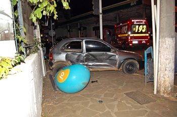 Com a força da colisão, o Corsa foi projetado contra a calçada, vindo a derrubar um telefone público.