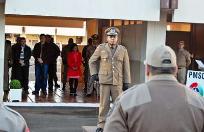 “Nós chegamos em Caçador com um desafio. Desafio este que a Polícia Militar de Santa Catarina enfrenta atualmente, que é a falta de efetivo. Não é um problema só de Caçador, mas sim das 295 unidades onde a PM se faz presente. Mas essa situação não se resolve em curto espaço de tempo”, disse major Medeiros.