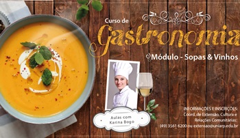 O curso de Gastronomia da UNIARP realiza dias 6 e 7 de julho módulo sopas e harmonização com vinhos, sob o comando da chef de cozinha Karina Bogo.
