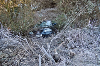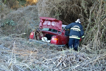 O primeiro acidente envolveu uma VW Parati que seguia em direção a Caçador. Quando a condutora passou pelo local, o carro acabou rodando, indo parar do outro lado da estrada em meio à vegetação.