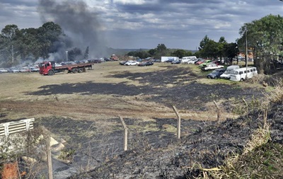 Fogo teria iniciado do lado de fora do terreno e devido aos fortes ventos se espalhado e atingido os veículos