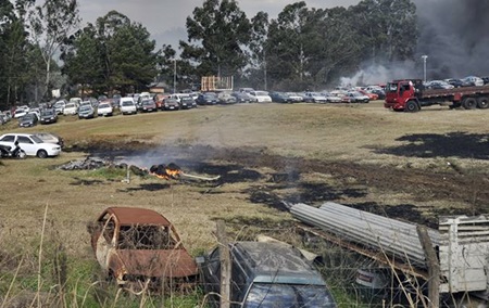 Um incêndio acidental destruiu vários veículos que se encontram apreendidos no pátio municipal de Caçador, no início da tarde desta terça-feira, 26 de julho. O fogo teria iniciado do lado de fora do terreno e devido ao vento acabou atingindo também os carros.