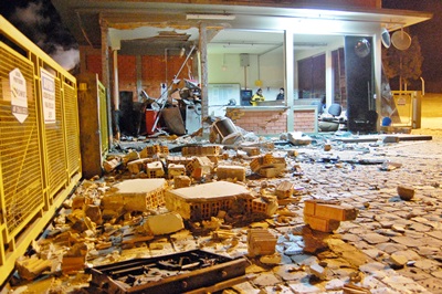 Utilizando explosivos, os meliantes conseguiram estourar e chegar ao dinheiro que havia no interior dos caixas. Toda a ação teria durado menos de cinco minutos.