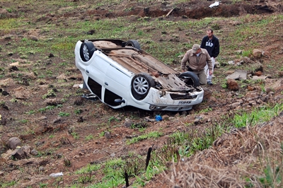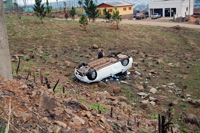 Um Renault Logan com placas de Caçador capotou no início da manhã desta terça-feira, 2 de agosto, na rodovia Honorino Moro, próximo ao complexo do SESI. Apesar da intensidade do acidente o motorista não se feriu.
