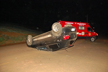 De acordo com informações, o VW com placas de Caçador seguia em direção a área urbana quando depois de contornar uma curva, o motorista perdeu o controle da direção e acabou capotando sobre a pista.