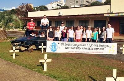 O LEO Clube de Caçador está durante esta semana com uma campanha de conscientização alusiva a Semana Nacional do Trânsito. A ação tem o objetivo de alertar os motoristas do alto índice de acidentes com mortes no último ano, que chaga a 43 mil mortos em todo o país. Cruzes foram confeccionadas e colocadas no Parque José Rossi Adami que levam até um carro batido e faixas com frases de conscientização.