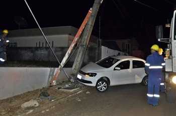 Parte do Bairro dos Municípios e adjacências ficou sem energia elétrica durante a noite deste domingo, 9 de outubro. Apesar da intensidade da colisão o motorista não se feriu.