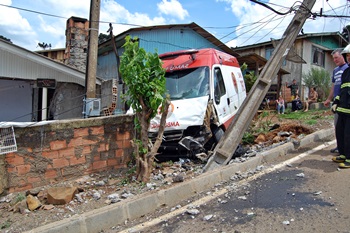 Uma Unidade de Suporte Avançado do SAMU de Caçador bateu num poste e invadiu o terreno de uma residência no início da tarde deste domingo, 16 de outubro, na Rua Joceli Carlos França, no Mutirão em Caçador. A viatura estava estacionada em frente à casa de um paciente e possivelmente um problema mecânico a fez desandar numa ladeira.