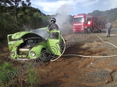 Chegando a guarnição se deparou com um VW Fusca placas 9968 de Caçador, totalmente em chamas. De pronto os combatentes combateram as chamas e fizeram o rescaldo do incêndio.
