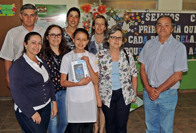 A estudante Sofia Gabriela de Andrade Groth do 6º ano da escola Albina Mosconi, de Macieira, foi a vencedora do concurso de receitas Mestre Cuquinha. A iniciativa é da Nutriplus, empresa responsável por fornecer a merenda nas escolas da rede estadual de ensino. A premiação aconteceu na sexta-feira, 21, com a presença do secretário executivo da 10ª ADR, Imar Rocha, da gerente de Educação, Dirley Heller, além de professores, alunos e funcionários da unidade.