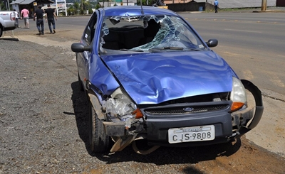 Um acidente de trânsito na manhã desta quinta-feira, 17 de novembro, deixou uma jovem gravemente ferida. Ela pilotava uma motocicleta Honda CG que foi atingida por um Ford Ka na saída do Elevado Primo Tedesco.