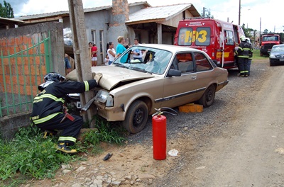 Um idosa de aproximadamente 65 anos ficou ferida na tarde desta quarta-feira, 7 de dezembro, depois que o GM Chevette em que ela estava bateu num poste na Rua Vereador Etelvino Pedrassani, no Loteamento Tabajara. Ela foi socorrida pelos bombeiros voluntários de Caçador.