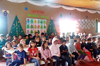 Os alunos da Escola Municipal Rodolfo Nickel, no Assentamento Hermínio Gonçalves, em Caçador, tiveram uma bela surpresa antecipada de Natal no sábado, dia 10, com a visita do Papai Noel para a entrega de presentes através do projeto Natal dos Correios, realizado pela agência de Caçador em parceria com a Secretaria Municipal de Educação, e ainda demais voluntários que doaram doces e um lanche para confraternização das crianças.