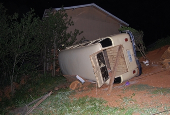 Poucos instantes após o condutor descer para começar descarregar a carga de areia, o veículo desandou e capotou várias vezes, e parou a beira de um barranco de aproximadamente 15 metros. Apenas uma pedra impediu que a Kombi caísse ainda mais e possivelmente atingisse uma residência.