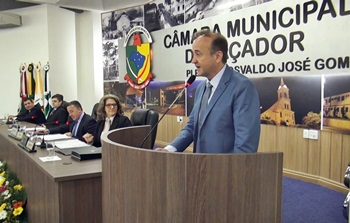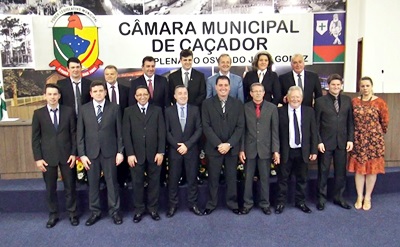 Sob a presidência do vereador mais votado nas eleições de outubro, Moacir D´Agostini (DEM), a Câmara Municipal de Caçador realizou na manhã deste domingo (1º), no plenário Osvaldo José Gomez, sessão solene de posse dos vereadores, prefeito e vice-prefeito eleitos, além da instalação da 18ª Legislatura e eleição da mesa diretora.