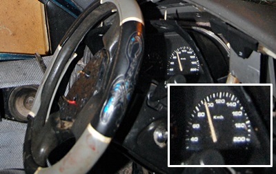 Nossa reportagem chegou a fotografar o velocímetro do veículo após o acidente que estava travado em quase 100km/h, porém não se pode afirmar que esta era a velocidade em que ele se encontrava no momento da colisão.