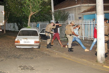 Assim que bateu o veículo, o motorista e uma jovem que estava no assento do carona correram a pé em direção a Beira Rio. Já os três ocupantes que estavam no banco de trás não conseguiram sair a tempo e foram abordados pelos policiais. A equipe do Pelotão de Patrulhamento Tático que já chegava para dar apoio localizou o casal que fugiu e os encaminhou até o local da abordagem.