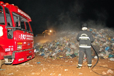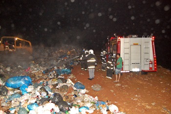 De acordo com informações, um foco de incêndio surgiu após um dos caminhões de coleta descarregar lixo no aterro, por volta das 21 horas.