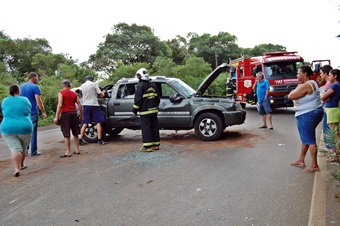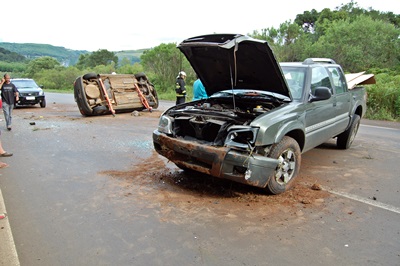 Para evitar uma colisão frontal com o caminhão, o condutor da caminhonete que seguia pela pista central, tirou para a pista da direita, momento em que acabou colidindo no Gol, fazendo-o capotar.