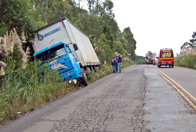 Um acidente de trânsito foi registrado na madrugada desta quarta-feira, 1º de fevereiro, próximo ao km 30 da rodovia SC-350. Um caminhão de uma transportadora de Caçador saiu de pista, porém o motorista não se feriu.