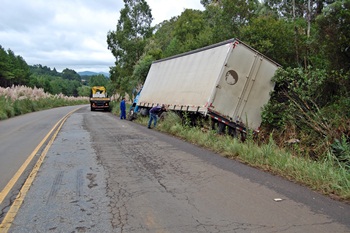 Nesta manhã, por volta das 9hrs, alguém que passou e viu o caminhão fora da pista acabou ligando para os bombeiros voluntários, os quais foram até o local, para realizar uma verificação, porém como os responsáveis pela empresa já estava lá para remover o veículo, nenhum procedimento foi realizado.