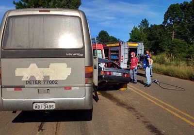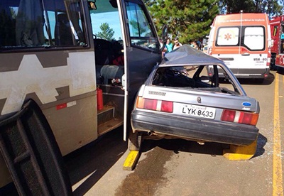 Com a força da colisão, o motorista do Escort, Dorvalino Tasca ficou preso ás ferragens e morreu na hora. Uma mulher que estava no acento do carona foi socorrida por uma unidade do SAMU e levada ao Pronto Socorro do Hospital Maicé.