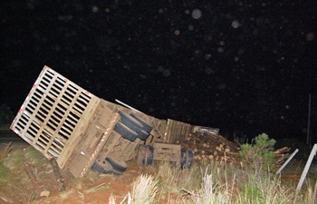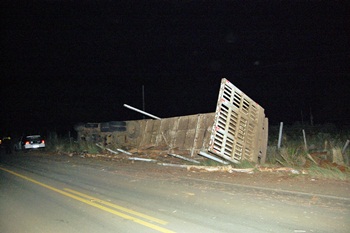 Um caminhão julieta carregado de toras de pinus tombou no início da noite desta sexta-feira, 24 de fevereiro, na rodovia SC-135, entre Caçador e Calmon. No momento do acidente os bombeiros não foram acionados, já que o motorista não se feriu, no entanto já à noite, populares que passaram pelo local e viram o caminhão tombado acabaram ligando para o 193, fazendo com que bombeiros e SAMU fossem até lá desnecessariamente.