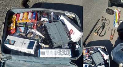Após a abordagem, os policiais realizaram buscas e encontraram diversos objetos condizentes com os que haviam sido levados do referido posto de Rio das Antas, dentre eles, várias carteiras de cigarro de marcas diversas e isqueiros a gás ainda na embalagem original. Também havia no carro, materiais utilizados para a prática de arrombamentos e a quantia de R$ 1.091,00 em espécie.