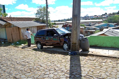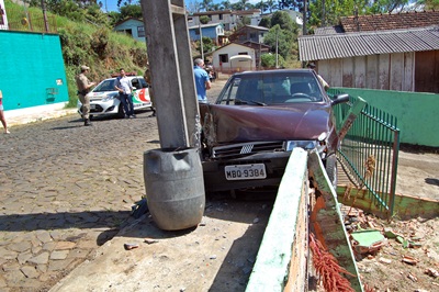 Um Fiat Uno placas MBQ-9384, de Caçador, bateu contra um poste no início da tarde desta, sexta-feira, 31 de março, na Rua Elias Biasi, no Bairro Alto Bonito. Uma mulher que dirigia o veículo sofreu ferimentos leves e foi socorrida pelos Bombeiros Voluntários.