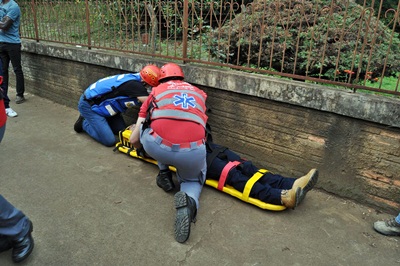 Ao ser acionado, o Corpo de Bombeiros Voluntários encaminhou uma ambulância e uma unidade de resgate ao local para prestar socorro ao rapaz.