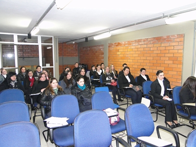 Estiveram presentes na mesa de honra e de debates os seguintes profissionais caçadorenses: assistente Social do CAPS-ad Elaine Bulat, psicólogo Marcelo dos Santos, Assistente Social da APAS Márcia Regina dos Santos Fenili, diretora do CRAS Cristiane Aline de Santi, assistente Social do CAPS II Sávia Maria Gomes Ferreira César, fisioterapeuta e professora Daniela Santos e professor da disciplina, Clayton Zanella.
