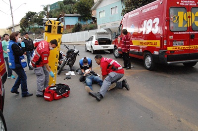 Um bombeiro voluntário que não estava, mas passava pelo local prestou auxílio até a chegada de uma ambulância. O motociclista sofreu ferimentos nas pernas, braços e no rosto. A Polícia Militar foi ao local e registrou um boletim de acidente de trânsito.