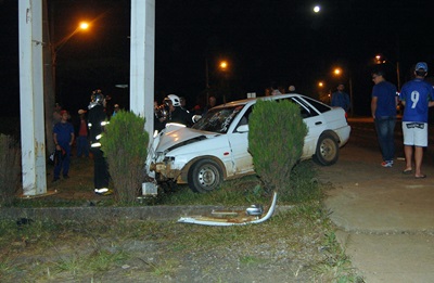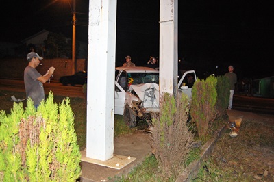 De acordo com informações, o Ford Escort com placas de Curitiba/PR descia a rodovia em direção ao trevo de saída para Rio das Antas quando o motorista perdeu o controle da direção, subiu na calçada e só parou quando colidiu num dos postes que segura a placa do posto.