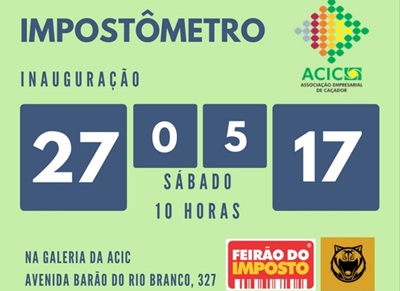 O evento está marcado para às 10 horas na galeria da ACIC (Avenida Barão do Rio Branco, 327). O painel será instalado na fachada da entidade e irá demonstrar o imposto cobrado dos brasileiros nos âmbitos federal, estadual e municipal.