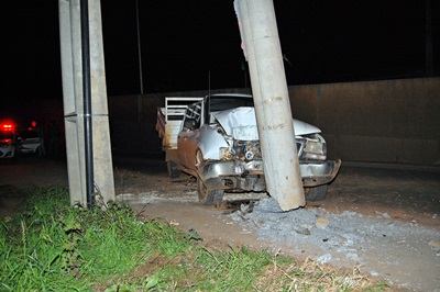 Uma caminhonete bateu forte e quebrou um poste de energia elétrica na rodovia Engenheiro Lourenço Faoro, próximo ao Elevado Osvaldo Olsen, na noite desta segunda-feira, 12 de junho. O condutor estava embriagado e foi preso em flagrante pela Polícia Militar de Caçador.