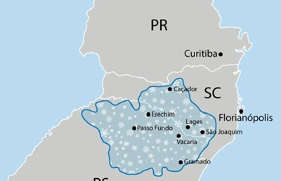 Pode ocorrer declínio acentuado de temperatura e condição de neve devido ao avanço de uma intensa massa de ar frio de origem polar. A mínima ocorre à noite. Há previsão de neve entre o fim da manhã e início da noite, devido à elevada umidade do ar e temperatura baixa.
