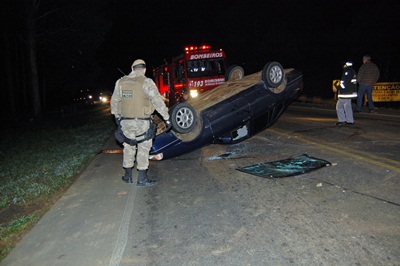 Um VW Santana com placas de Tangará capotou na noite desta quinta-feira, 17 de agosto, na rodovia Antônio Comazzetto, próximo ao Motel Status, na saída de Caçador para Rio das Antas. O motorista estava embriagado e foi conduzido a Delegacia da Comarca pela Polícia Militar.