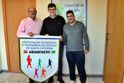 A Fanfarra Municipal de Caçador recebeu na terça-feira, 22, uma visita do diretor da Associação de Bandas e Fanfarras de Santa Catarina (ABANFAESC), Beto Orsi. O diretor foi recepcionado pelo maestro da fanfarra, Cleverson Olavo da Silva, e acompanhou o ensaio dos 40 músicos que compõem da Fanfarra Municipal.